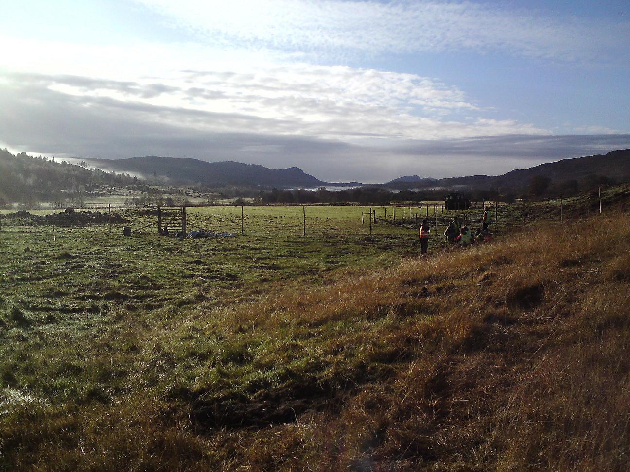 We spent a couple of days planting 2000 or so trees in the field by the river Moriston.  The field had already been planted up during previous weeks and it was a matter of filling in the gaps.  The first couple of mornings were crispy white, just as Scottish winter mornings should be.