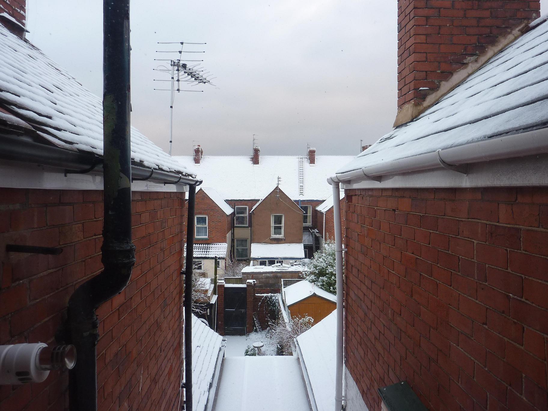 Two things I really wanted for Christmas, but knew were a bit beyond Santa’s budget, have turned up in the last couple of days. Yesterday a new camera, with zoom, and today, more importantly, some snow finally fell on Exmouth, after hearing about lots of it falling elsewhere in the country. The camera is a budget digital compact, but should still do better than my phone. The snow was just a thin covering, but was much better than nothing. Here are some pics. The camera’s instruction manual is fairly lengthy so some of them may still fall short of it’s full potential…