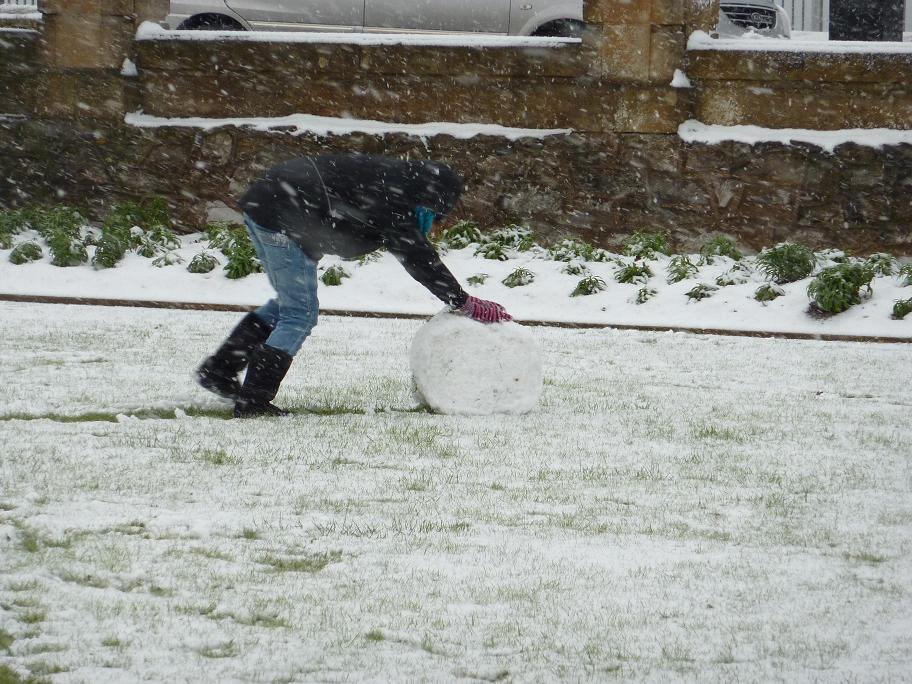 - Zara building a snowman