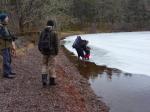 The wood is a marvellous place, lots of young growth in the midst of a good mix of trees. We walk part way up a small hill to eat lunch and then head down to Loch Migdale, which still has a good covering of ice on it. There are some great cliffs nearby, dotted with a few Scots Pine, a habitat untouched by human hand (probably). It’s easy to imagine that there might be some Peregrine nesting up there somewhere.