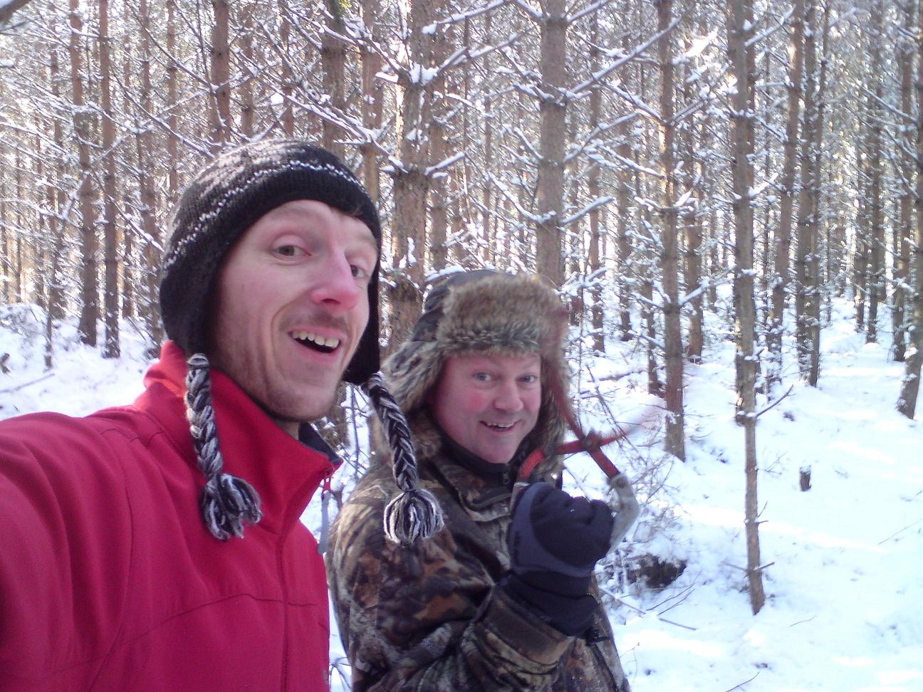 - Tom modelling one log carrying device; myself modelling the “It’s a hat!” hat