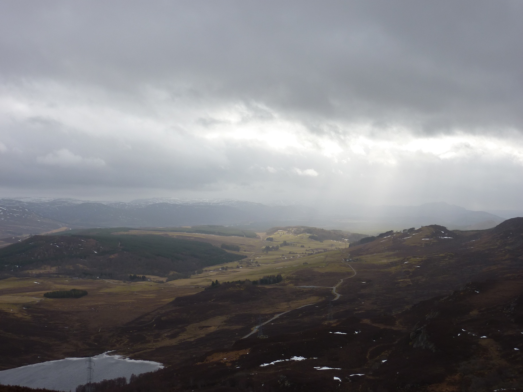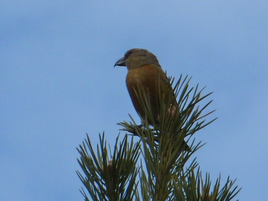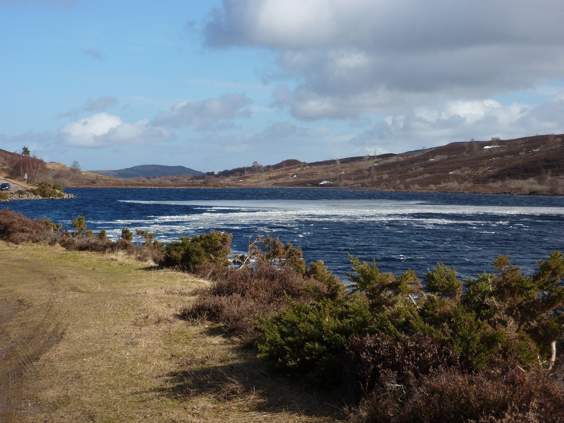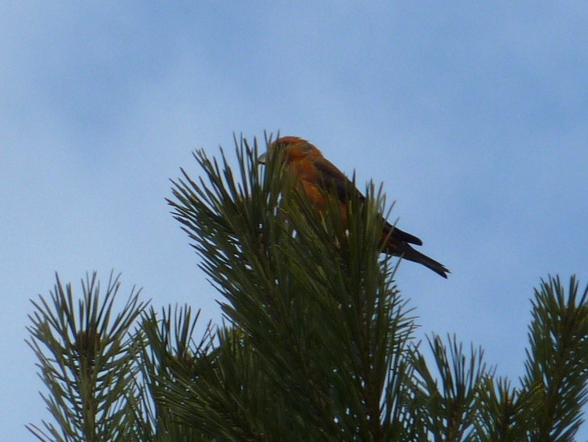 All the lochs are frozen and the sky is blue… I walk up another hill, Tom Bailgeann, and do more woodsy stuff, and have to stop my van at one point, for some Crossbills, in the road, fantastic.