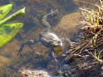 And, on top of all that, there were Ospreys. Anyway, more more about them shortly. Just to finish the day off nicely, after spotting a Toad swim up underneath the Gullery, and following the advice of Steve, a regular visitor, I decided to call by the Lily pond on my way back to the flat. At the pond there were hundreds of toads splashing and swimming about. Not all of them were in full voice, but there was a decent amount of croaking. The pair of Swans sleeping out in the middle had obviously seen it all before. I stood with the lowering sun warm on my face, listening to the action for a few minutes, before strolling back to the flat.