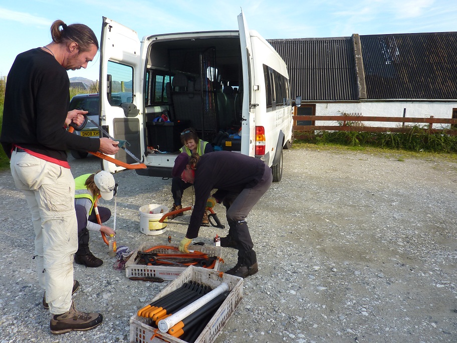 Back to the work week, I knew Adam and Lizzie already, so it was great to see them again, and the rest of the group were a mix of city dwellers, a wood dweller and a tall dutchman. We removed sizeable areas of non-native scrub from Balmacara and Glen Arroch. The area at Balmacara will be planted up with young Oak in the spring, although we found some regeneration already there. This has spread from the existing Oak wood remnant, which is well worth a visit as it has the feel of a beautiful old Oak wood.