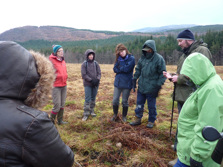 We got a chance to learn about the new Dundreggan planting site, Rosie showed us how to calculate distances from our stride length, Dan taught us about tracks and signs, and Adam enlightened us with the names of woodland flora.