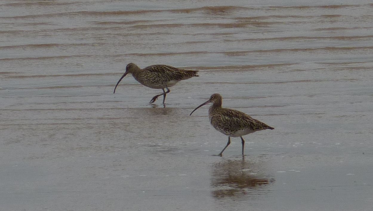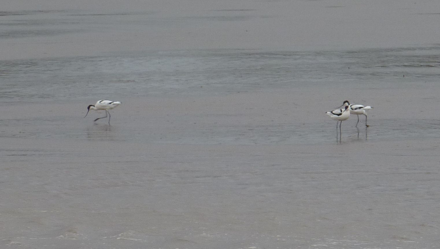 - Redshank and Godwits try to find some shelter from the chilly breeze