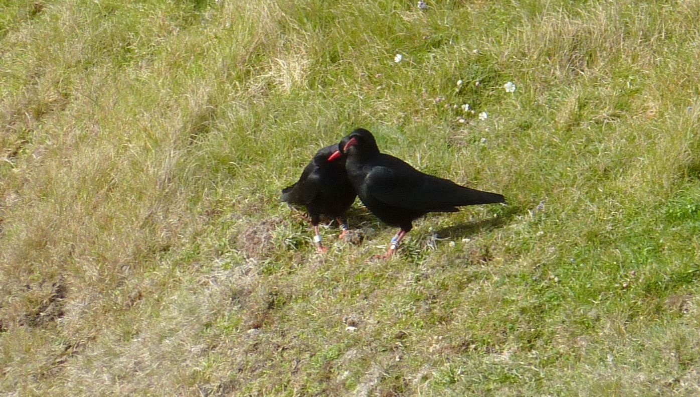 Meanwhile, he’s continuing to harass the local raven, although he now seems at ease with passers by. Apparently ravens are known to take chough eggs, so I have to wonder whether his behaviour doesn’t just draw attention to the pair, or if he’s got the raven thinking that he’s not to be messed with. We’ll see.
