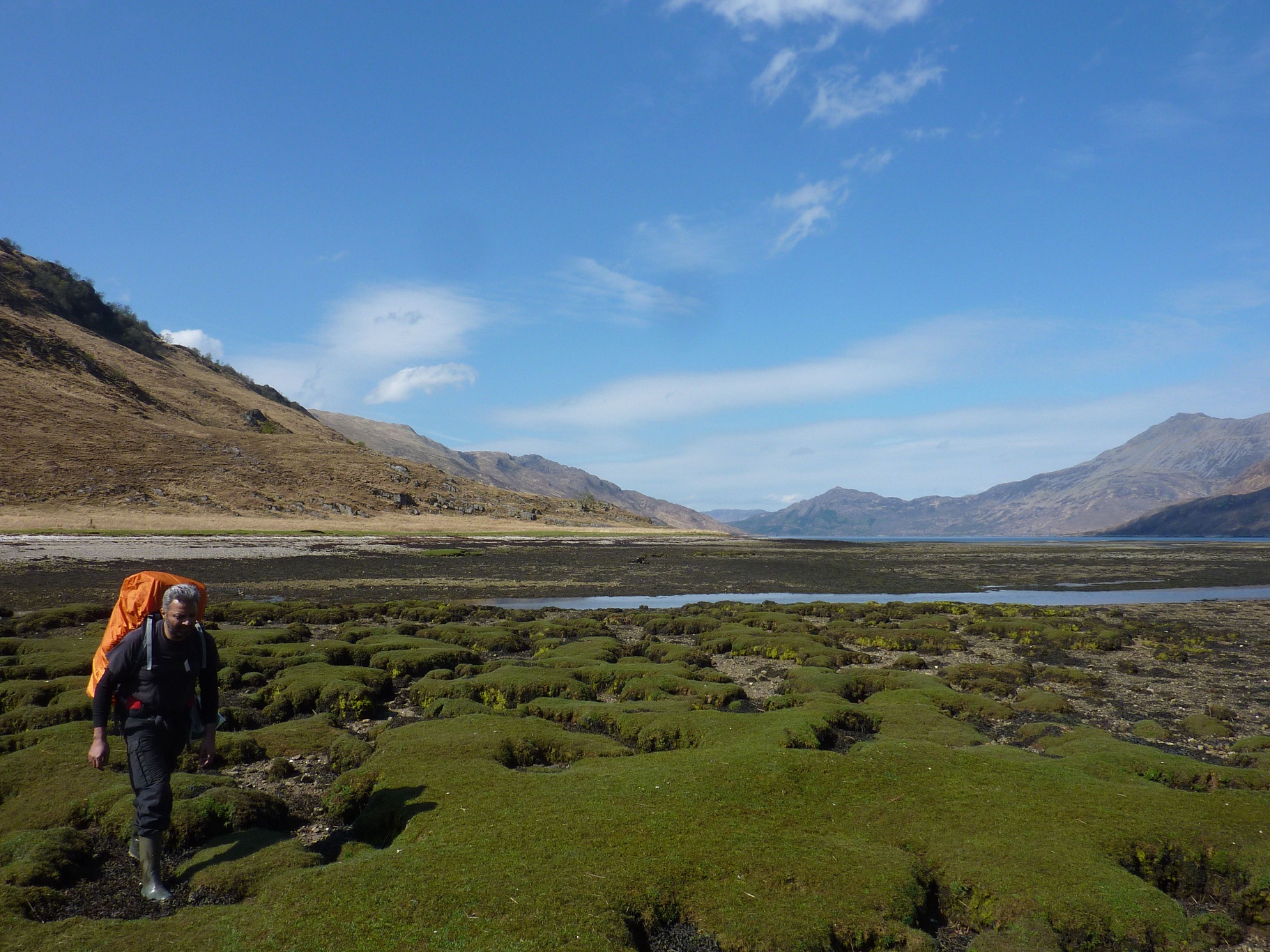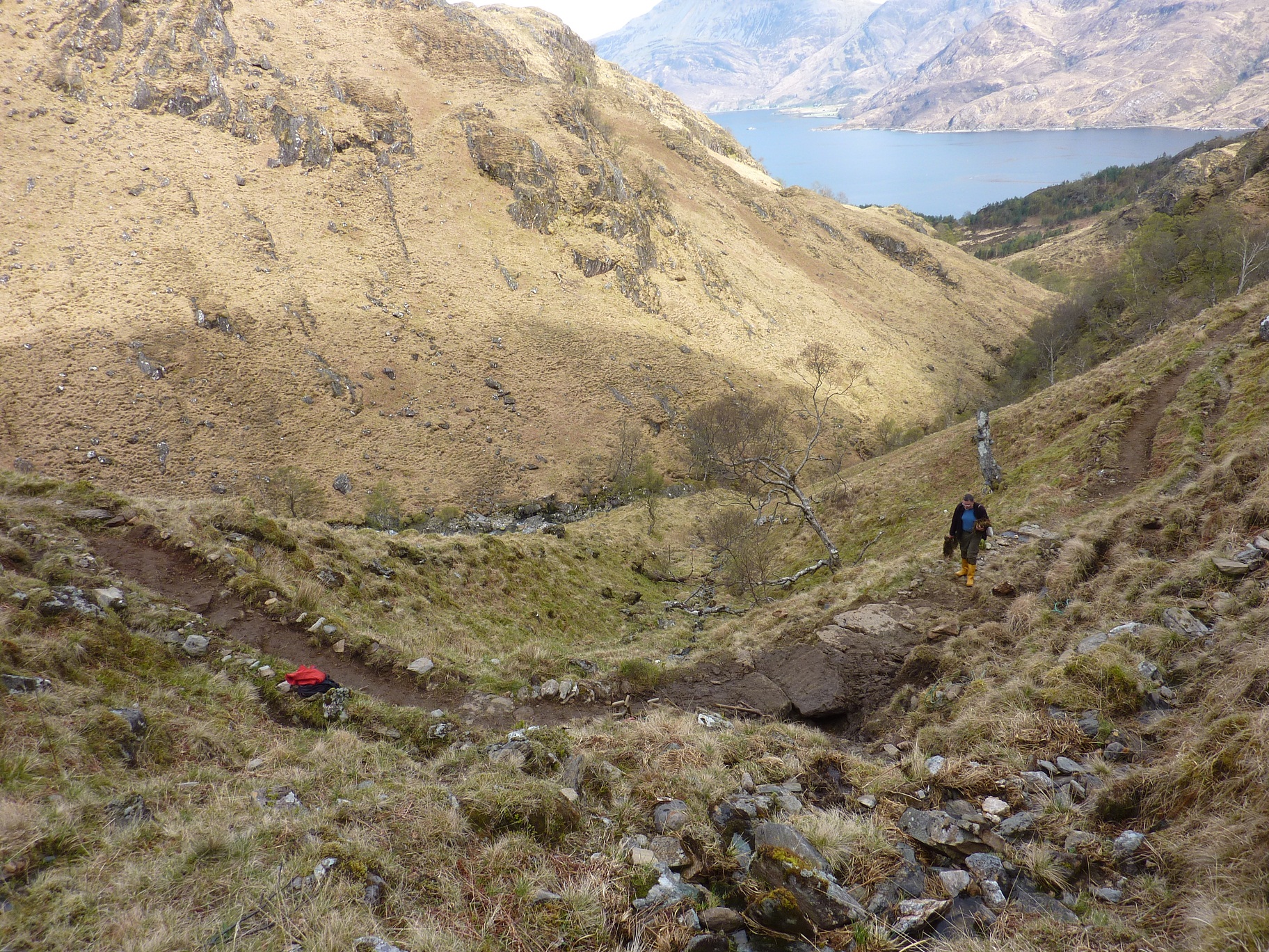 Bizarrely, even though the path to Barrisdale was totally unsuitable for it, one of the work party attendees, Doug, decided that he would cycle from the Kinloch hourn car park. The more we walked the more I realised that Doug must be completely mental. Perhaps not surprisingly, we caught up with Doug as we were approaching Barrisdale, three hours into the walk/cycle. He looked like he might not make it, and commented that he was ‘running on empty’. He seemed like a nice guy and I wasn’t looking forward to carrying him , and his bike, back to the car park. But, just then, the path descended its final slope and turned into a vehicle track. Doug was away, and we marched on, relieved.