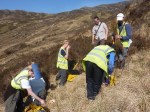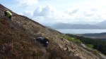 We were also lucky enough to have a fine group of volunteers, some of whom I knew, and some I was meeting for the first time. We planted 3020 trees on a fairly steep slope over the road from the plantation in Glen Kylerhea (down towards the Kylerhea ferry). During our three days there we heard, and occasionally saw, at least two grasshopper warblers, and twice a golden eagle, once soaring higher and higher and then twisting and feinting as it dropped into the next glen, and the next time flying low over us with a bunch of hoodies in tow. This was in addition to a fine array of other birds, caterpillars, bugs, etc.