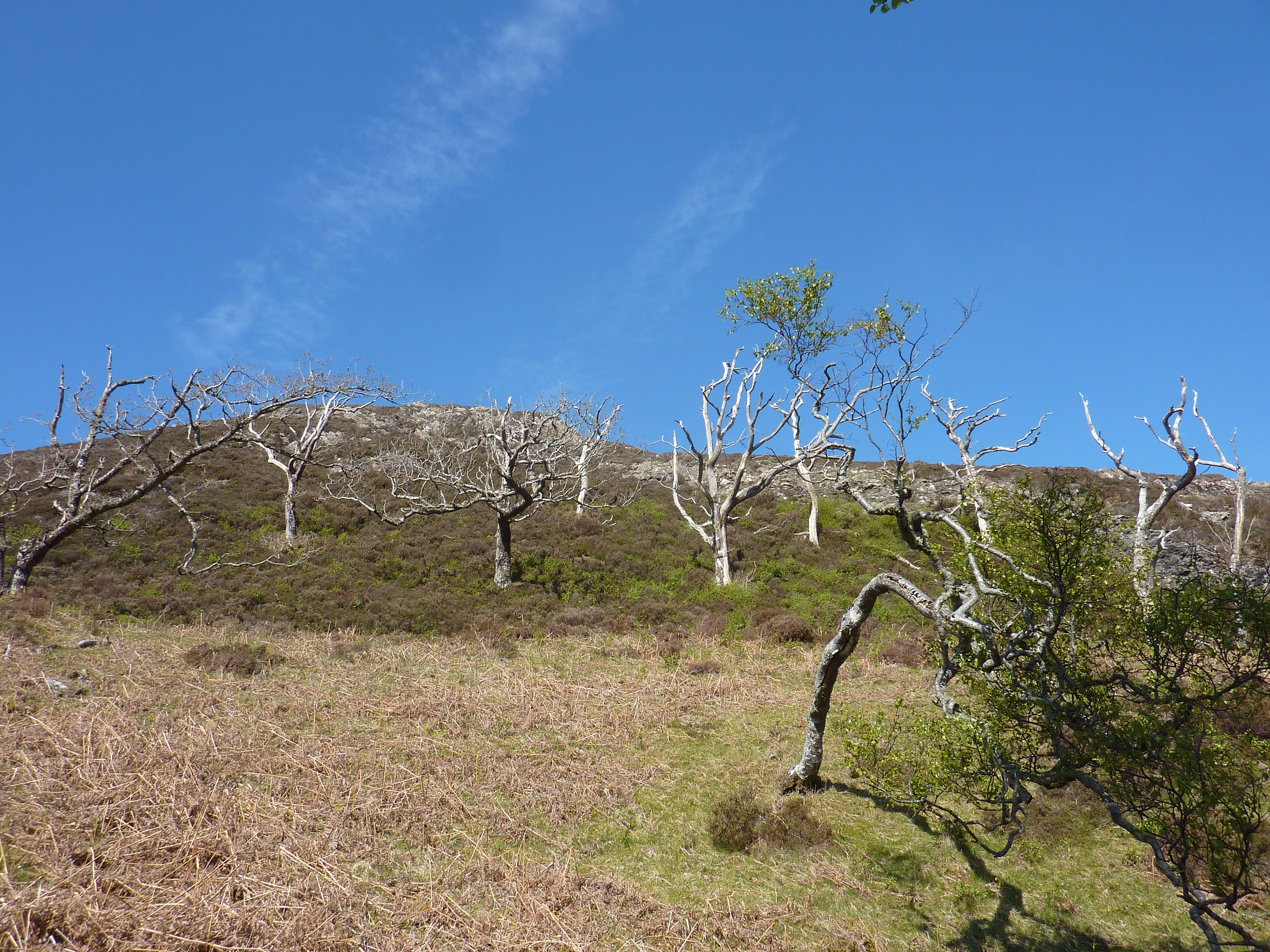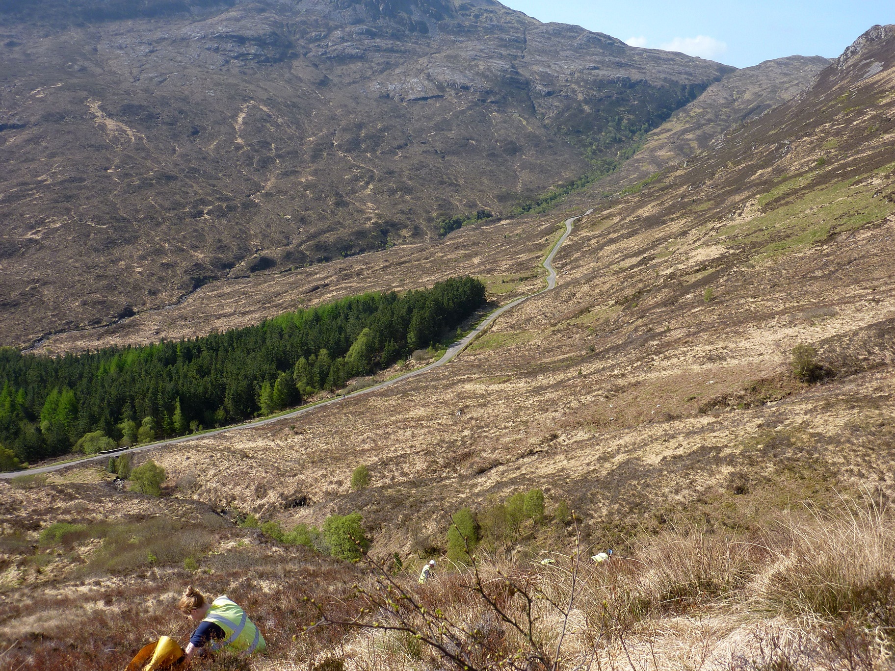 We also spent a day felling Spruce at Balmacara and, on our last working day, clearing smaller spruce from a beautiful spot near Leitir Fura (look it up and pay it a visit). For my day off I walked to Gleann Meadhonach and Dalavil woods. There is an area of planted young woodland before the Glen opens up, and the whole walk was absolutely stunning. I’ll create another post to discuss my wildlife sightings.