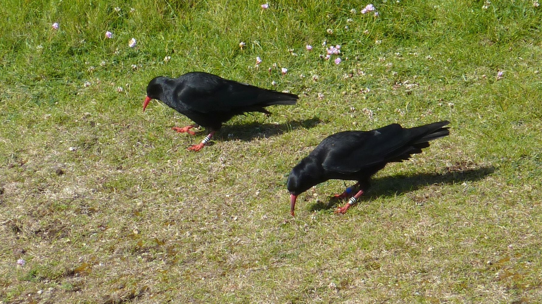 I walk about in the sunshine wondering if all is ok (see previous entry). Apparently the choughs haven’t been seen at their usual feeding site this morning. But then I see one, and then the other. In fact they spent a lot of the day feeding near me. And it’s beautiful day, and I maybe get a bit carried away, taking pictures of everything I see…