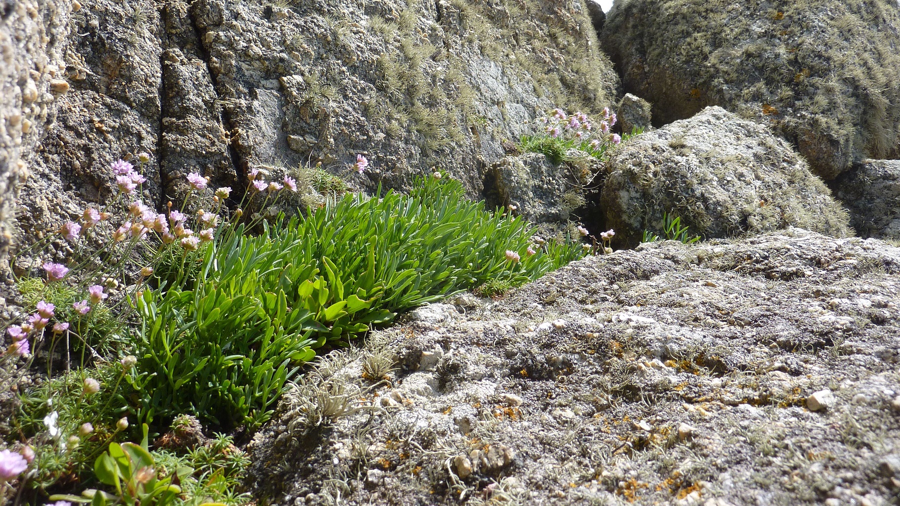 - Sea pink (Armeria maritima) and what I think is rock samphire (Crithmum maritimum) in the foreground, but, if anyone knows otherwise…