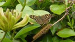 - Speckled wood (Pararge aegeria) with a lackey (Malacosoma neustria) moth caterpillar in the foreground