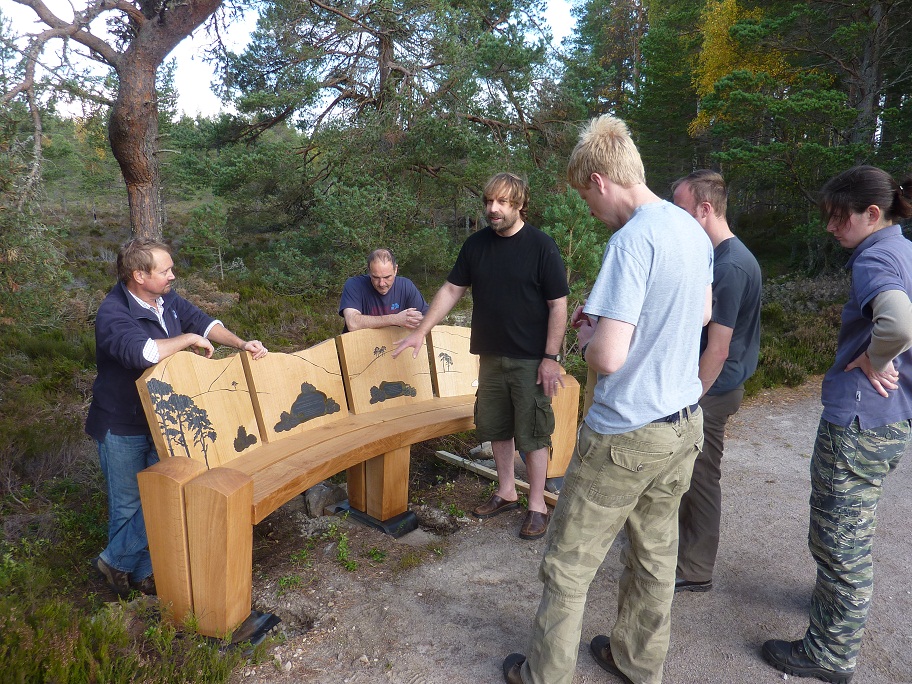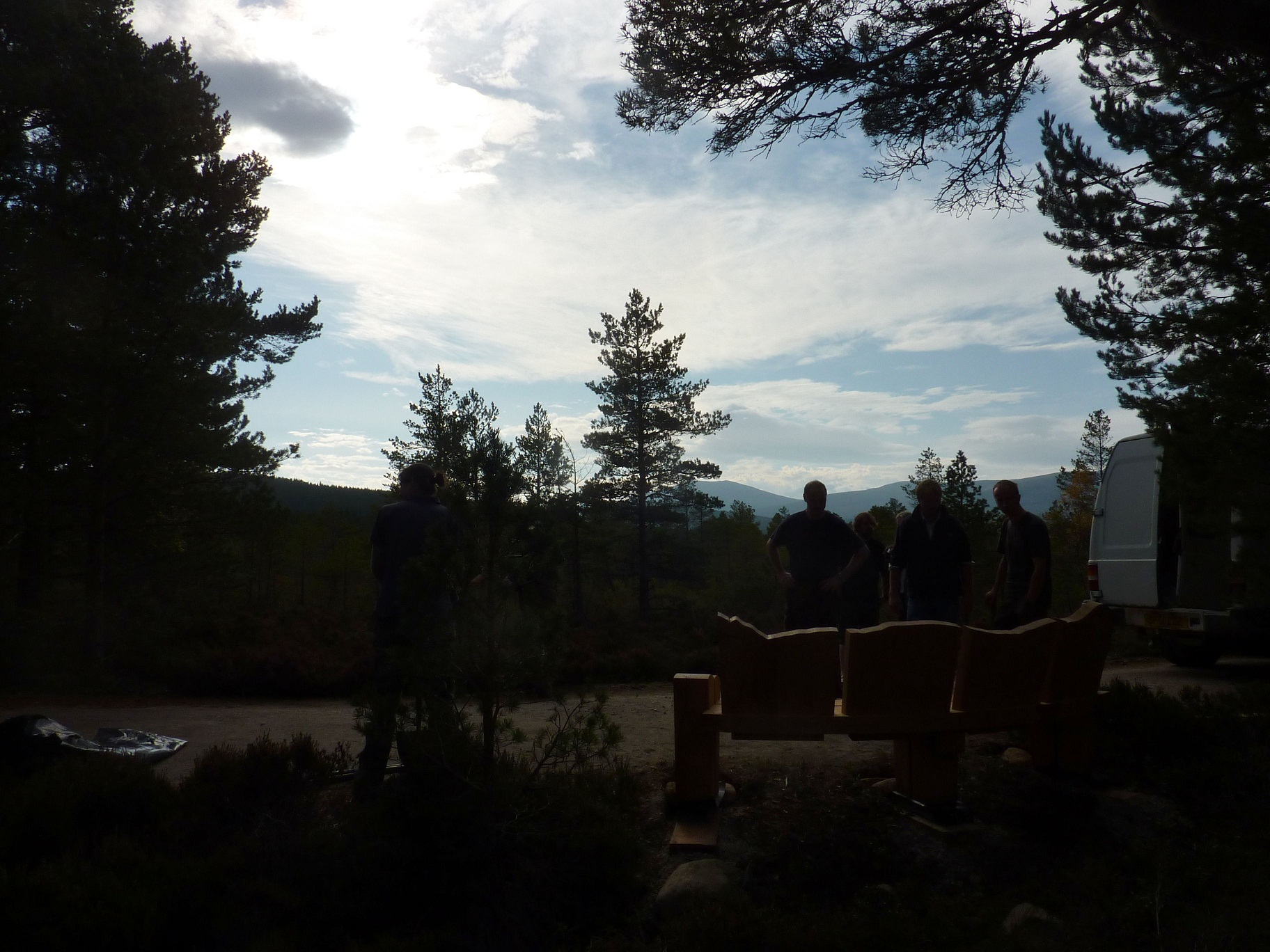For my first day’s work myself and the two current short term volunteers went along with Alice and Ian to join Kate at the Fairy Glen to clear some fallen trees from over the burn/stream (please ignore as appropriate for your country of origin). Today, my second day, we helped install a rather nice bench up near the Osprey Centre, and I received an ‘induction’.