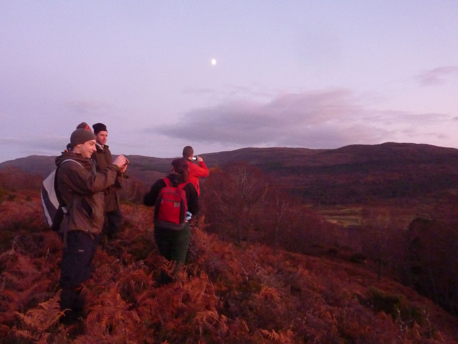 We spent three days working in the planting area on the North West of the estate. From here we had a great view of the mountains of Glen Moriston, and were witness to colourful sunsets each evening. Here too, some of the birch trees have already reached five foot and it will be interesting to see how the site looks in spring, when the trees start getting their leaves back.