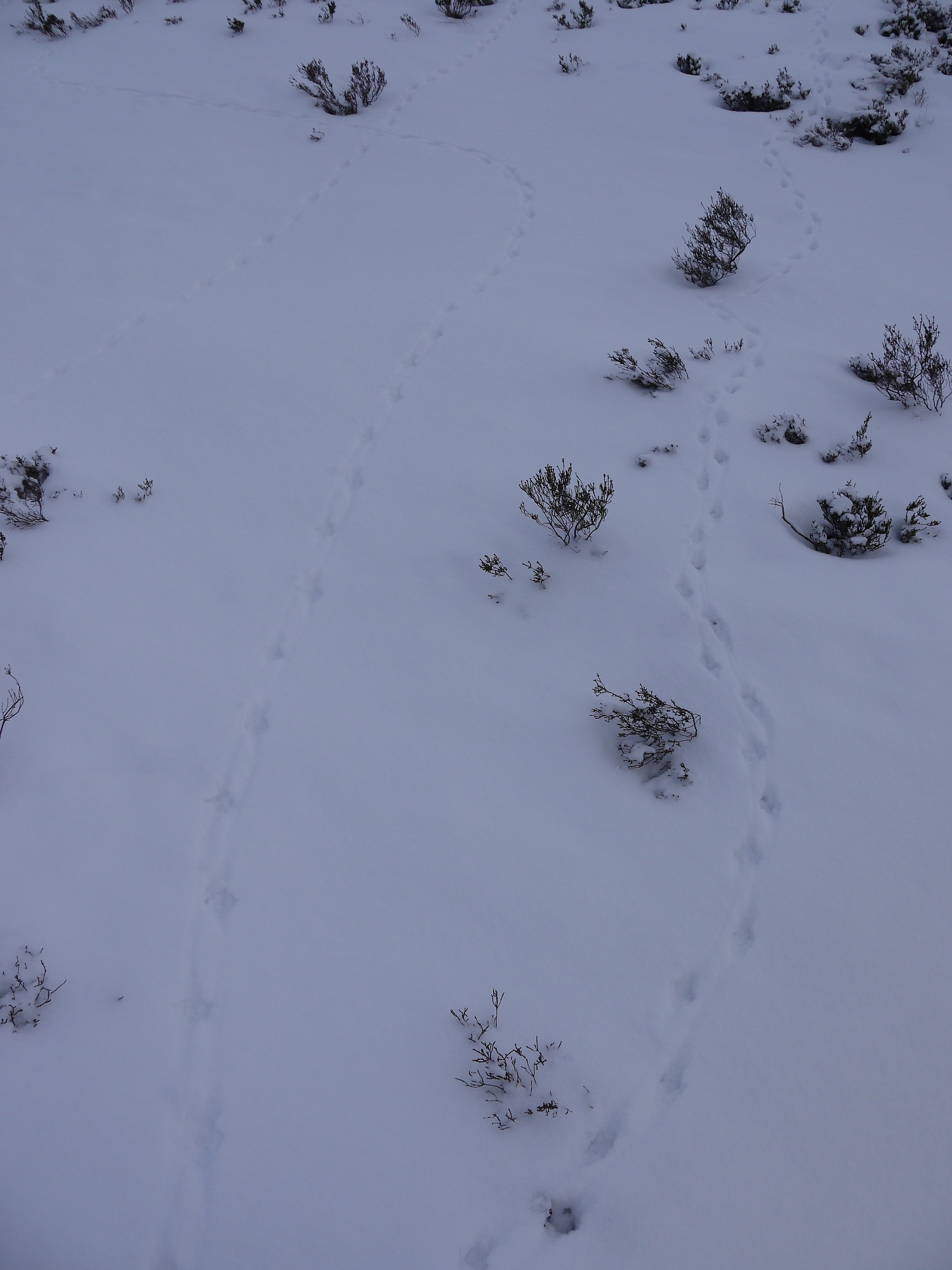 - These are grouse prints – I’m going for red (Lagopus lagopus), as opposed to black, because I found them high in the hills, away from the woodland edge.