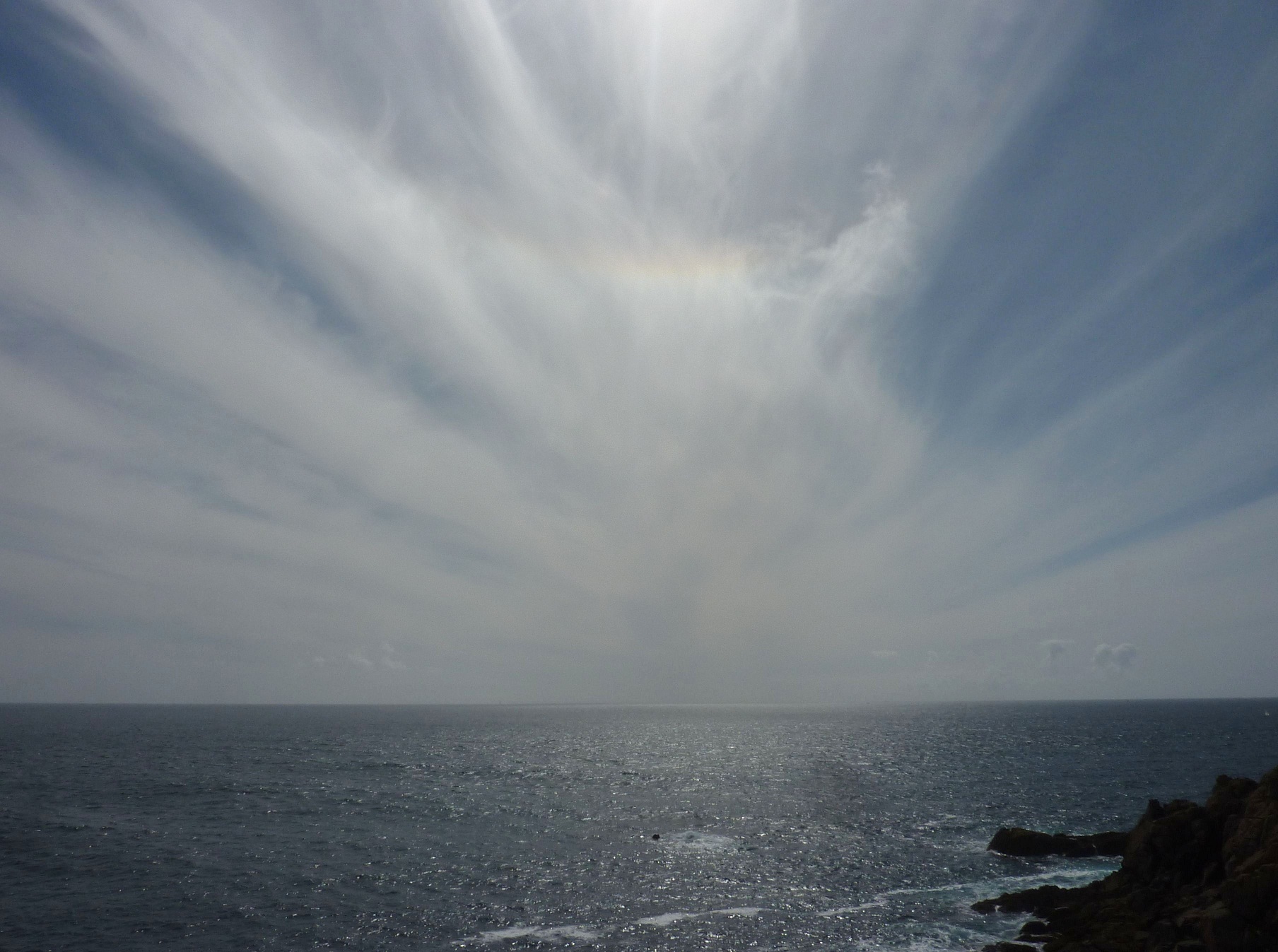 - Wall pennywort or navelwort (thanks Nic/Rachel), lichen on rock, and the Atlantic. And some sky (blue).